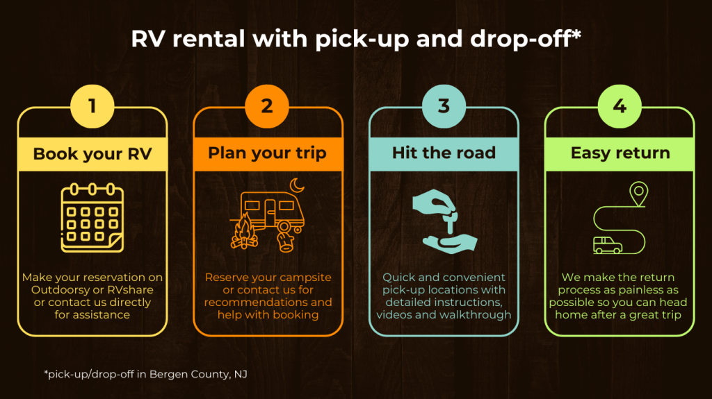 Flexible options for first-time and experienced RV travelers.